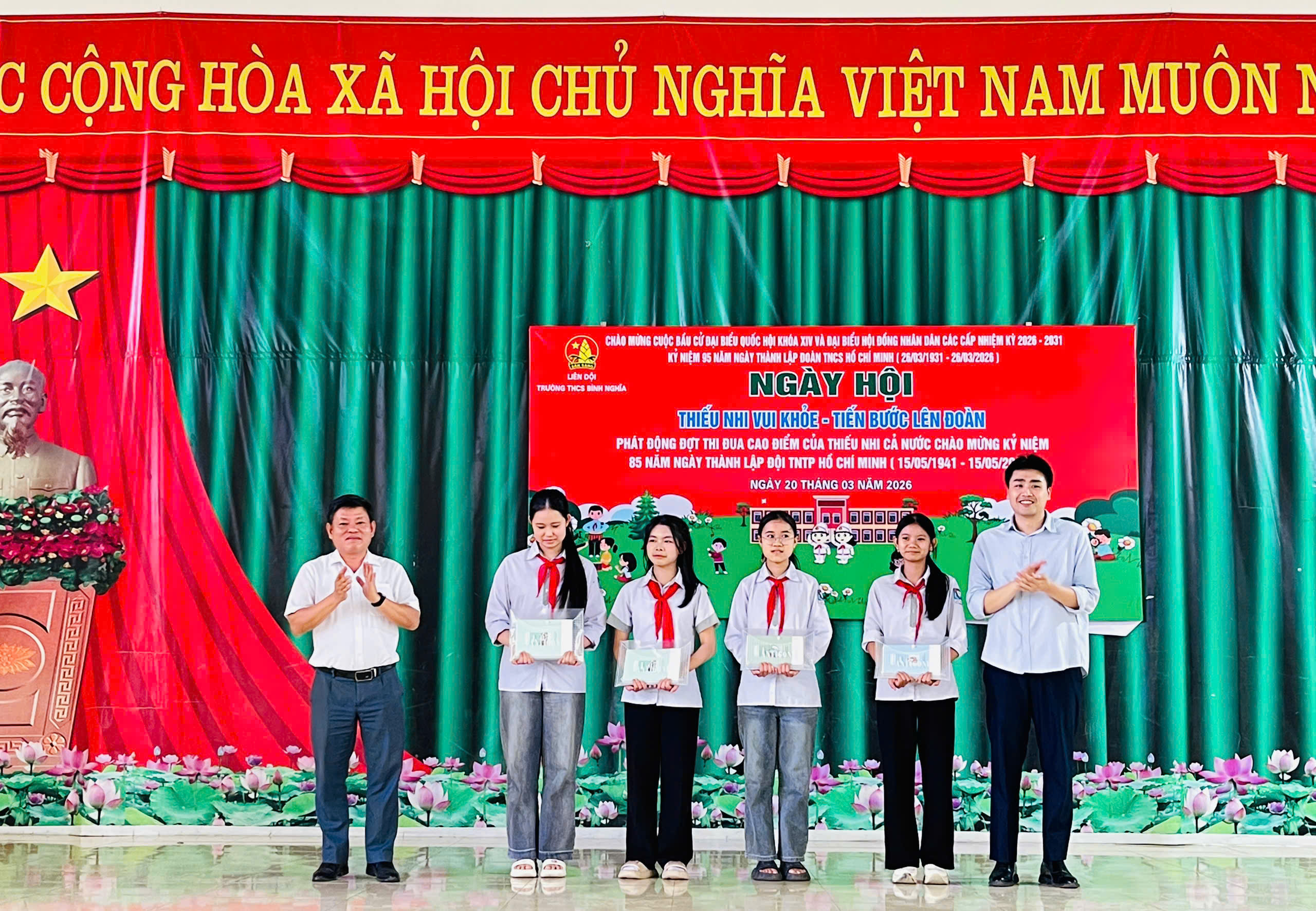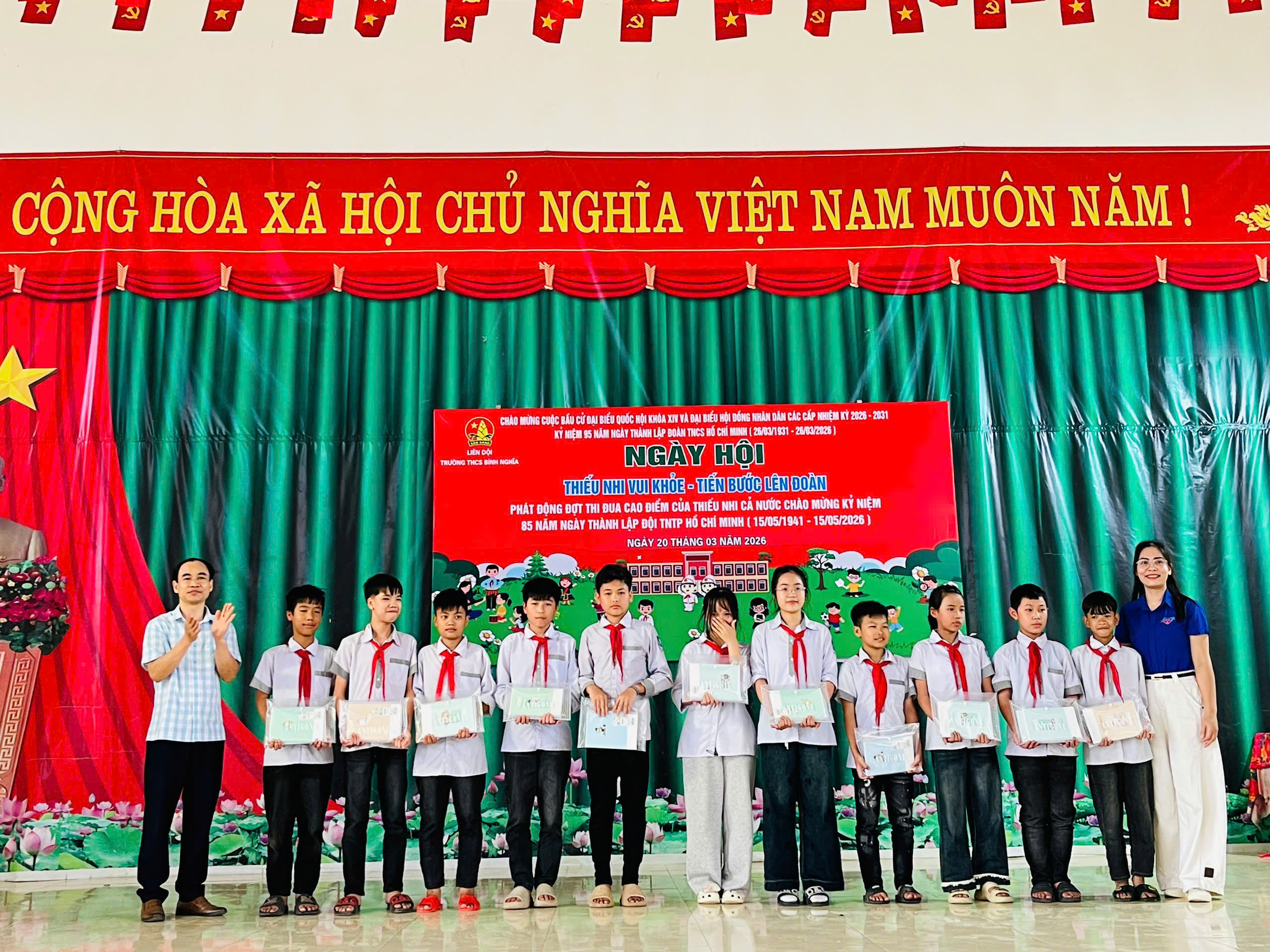 🌟Ngày 20/3/2026 Liên đội, trường THCS Bình Nghĩa tổ chức ngày hội “Thiếu nhi vui khoẻ – Tiến bước lên Đoàn” chào mừng kỉ niệm 95 năm ngày thành lập Đoàn TNCS Hồ Chí Minh (26/3/1931 – 26/3/2026), hưởng ứng đợt thi đua cao điểm chào mừng kỉ niệm 85 năm ngày thành lập Đội TNTP Hồ Chí Minh và chào mừng thành công cuộc bầu cử Đại biểu Quốc hội khoá XVI và Đại biểu HĐND các cấp nhiệm kỳ 2026 – 2031.